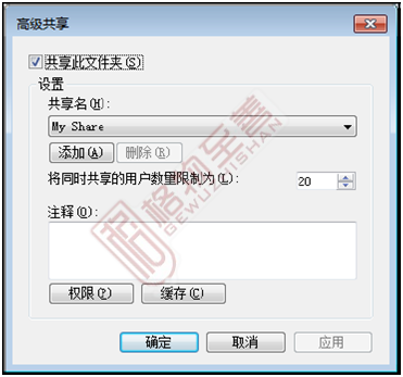 3 单击[ 共享] 标签。在弹出的界面中添加scan,并给与读╱写权限,点击共享