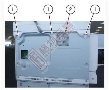 5、轻轻拉出纸盘1,并拆下用于紧固Hinge Front Cover的螺丝。