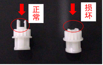 近期,场地上发生多起纸盘提升故障(错误代码为071-210,072-210等),调查发现是纸盘背部的传动齿轮(图1,注1),凸出的传动杆断裂,如图2所示。