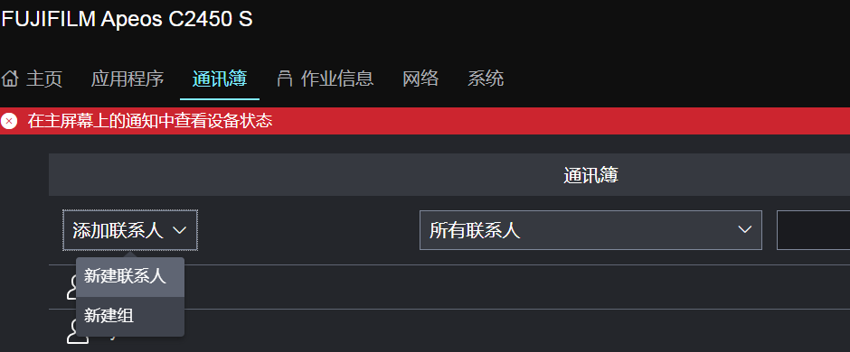 复印机硬件安装完毕并设置好IP址,打开游览器输入复印机IP地址,如下图