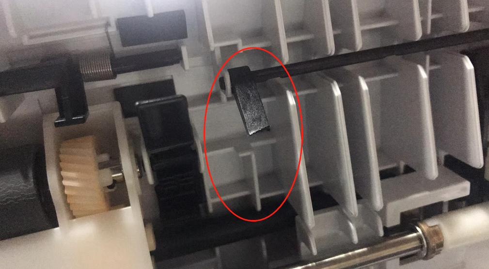 机器用输稿器走纸会报错误代码003-956 无法检测原稿尺寸。稿台玻璃复印是正常的。测试同时在稿台和输稿器放入原稿测试,复印出来的是稿台玻璃的原稿。那就是输稿器没有检测到原稿导致的放了原稿在输稿器上其实检测的是稿台玻璃的,由于之前是稿台玻璃没有放入原稿所以会报无法检测原稿尺寸。根据这个思路查看输稿器检测原稿的传感器发现一个断了,导致的检测不到原稿。