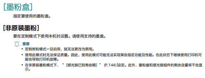 C2450“非原装墨粉”一旦开启后就无法再次关闭,请慎重设置。
