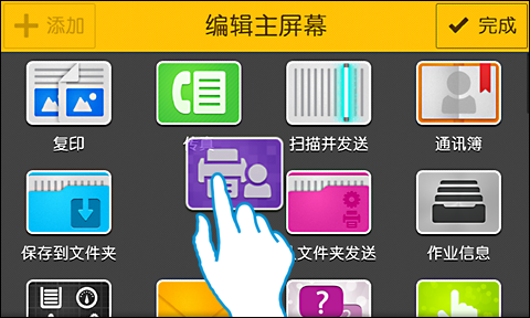 您可以通过简单而直观的操作,指定菜单画面上显示的图标(app)及它们的排列方式,或者作业画面上显示的功能及它们的顺序。您还可以隐藏不需要的功能。