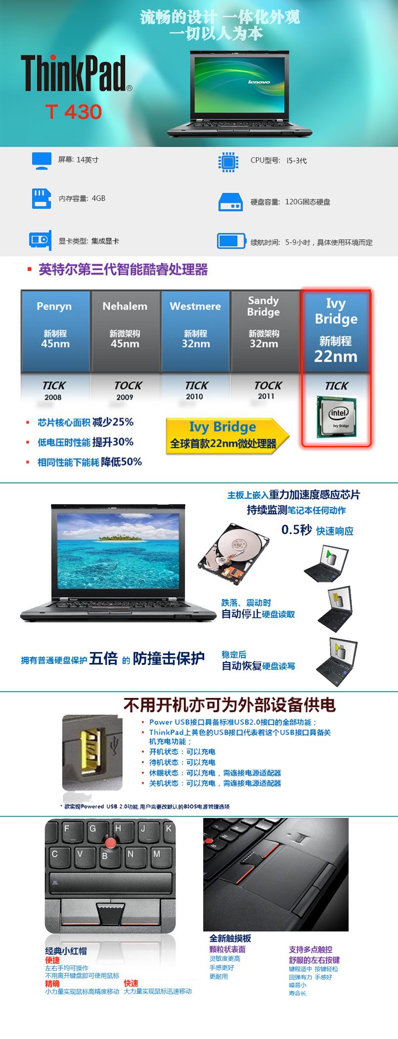 联想 ThinkPad T430笔记本电脑 I5/4G/120G固盘